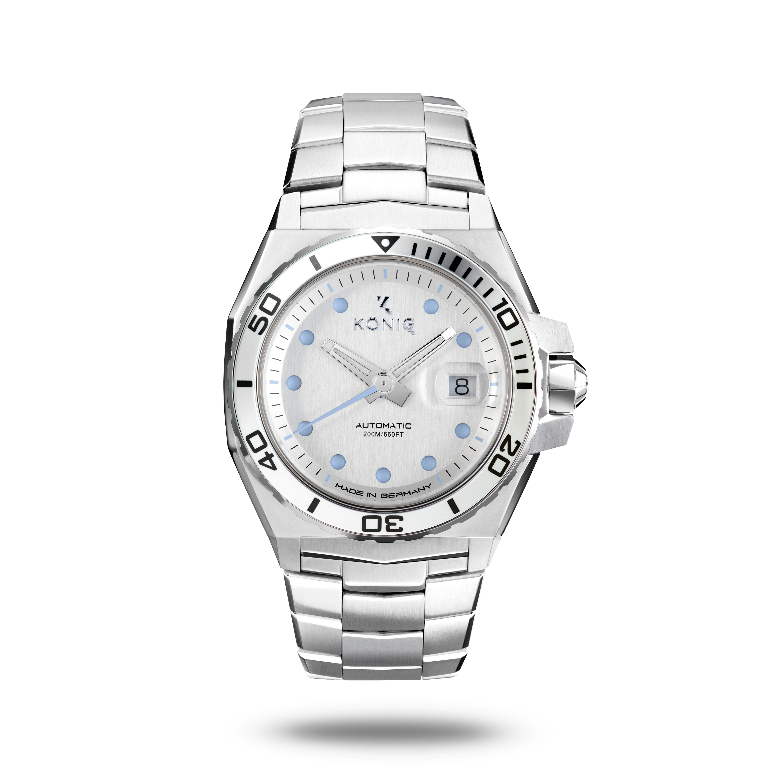 SS Case, 10 Blue Sapphire, Ice Blue Dial, Stainless Steel Band