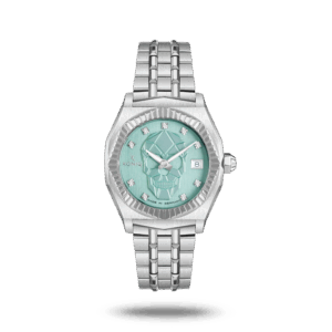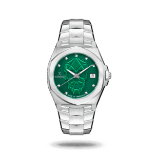 SS Case, 9 White Diamonds, Green-572C Dial, Stainless Steel Band