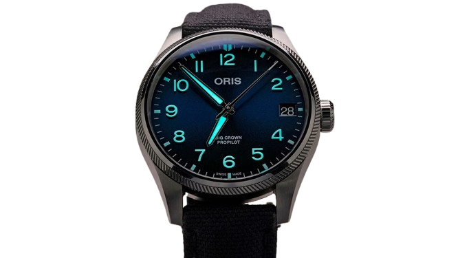 Be the first to review “Oris BC ProPilot Big Date, Dial:Blue, arab num Textile Strap Grey”