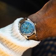 The Oris Big Crown x Cervo Volante embodies the perfect combination of Swiss watchmaking and sustainability. This 38mm stainless steel watch features an Alpine-inspired blue dial and a strap crafted from sustainably sourced deer leather, produced in collaboration with Cervo Volante.