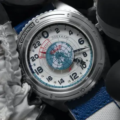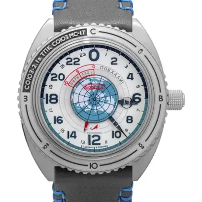 A standout feature is the bezel, crafted from an actual metal piece of the Soyuz-2.1a launcher, connecting the wearer to the legacy of human spaceflight. The strap is made from authentic Sokol spacesuit fabric, and is interchangeable with leather, blending comfort with a striking historical narrative. Water-resistant to 20 ATM / 200 meters, this watch is built to endure both terrestrial adventures and extreme conditions.