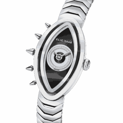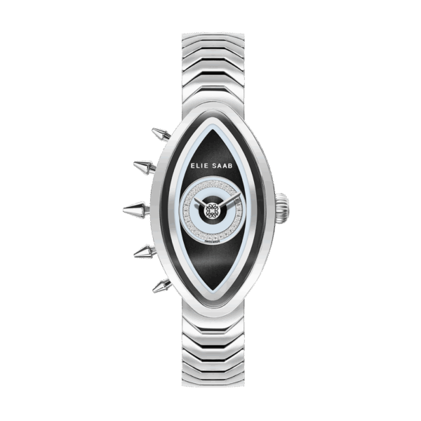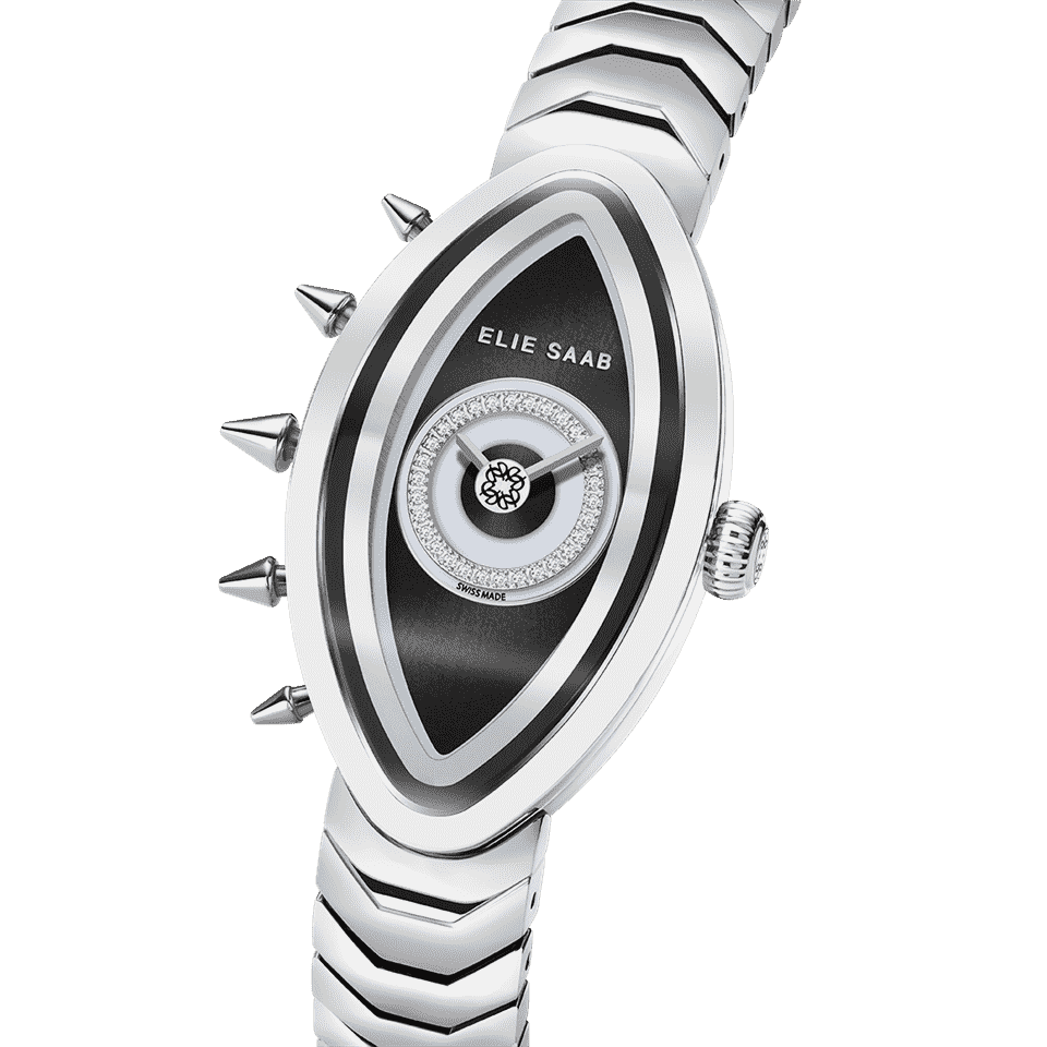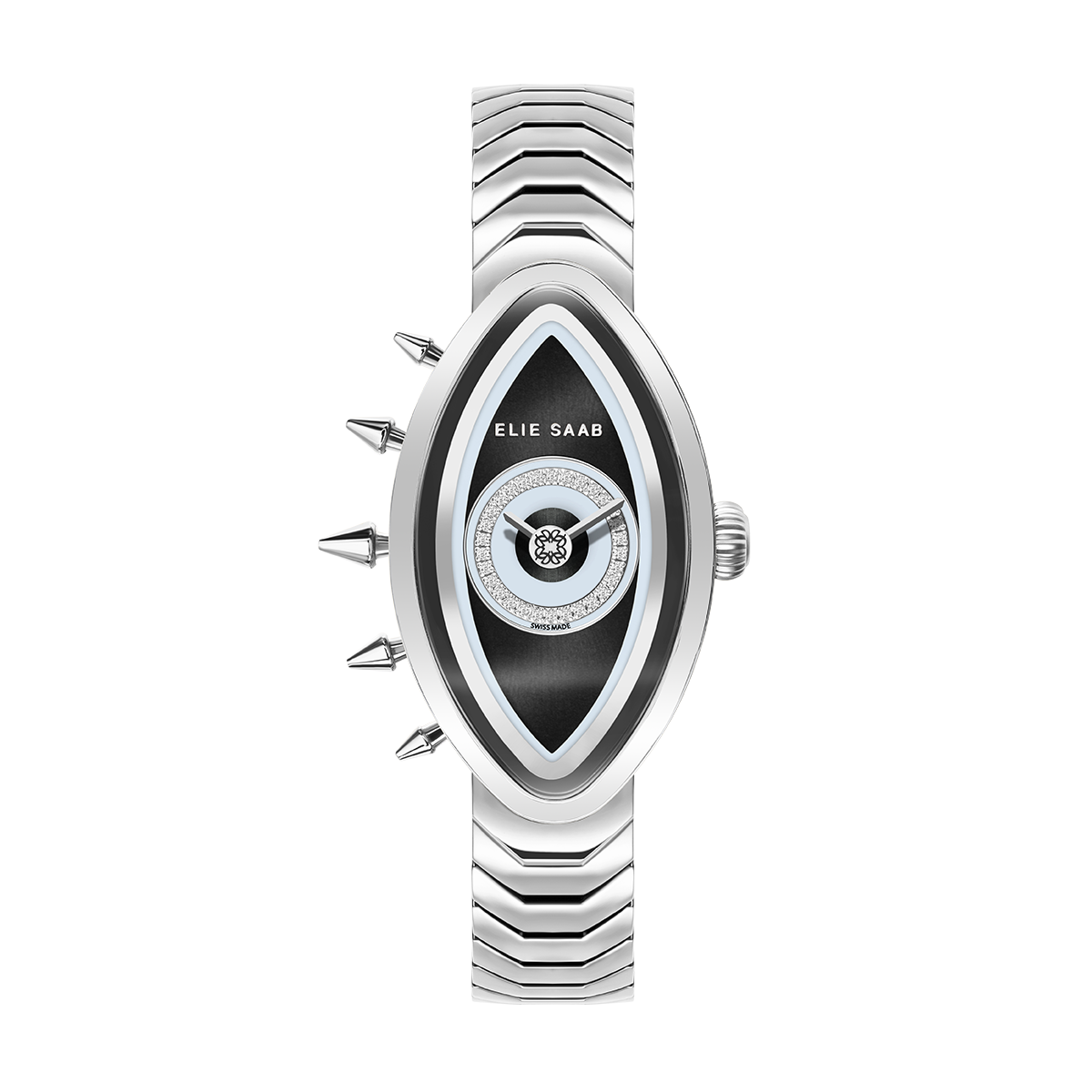 Bold Swiss-Made Eye-Shaped Watch with Diamond Accents