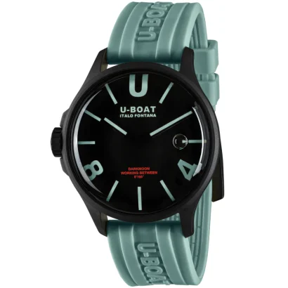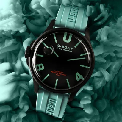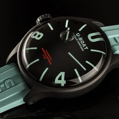 Completing the design is an aquamarine ultra-resistant silicone strap (22/20mm) embossed with the U-Boat logo in relief, and a black PVD stainless steel tongue buckle. With 50M (5ATM) water resistance, this watch is ready for everyday wear while retaining its luxury aesthetic.
