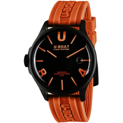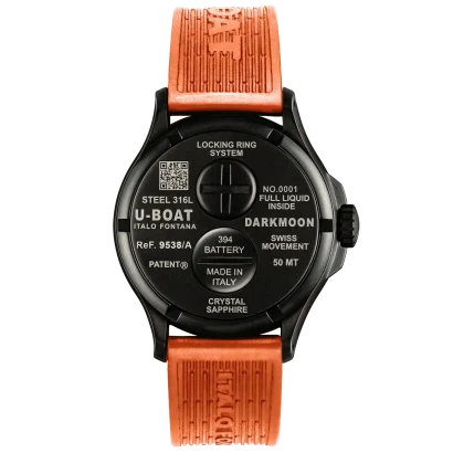 Completing the design is a 22/20mm ultra-resistant orange silicone strap, embossed with the U-Boat logo and secured by a black PVD stainless steel buckle. With 50M (5ATM) water resistance, the Darkmoon 9538/A is perfect for everyday wear, combining sporty energy with refined luxury.