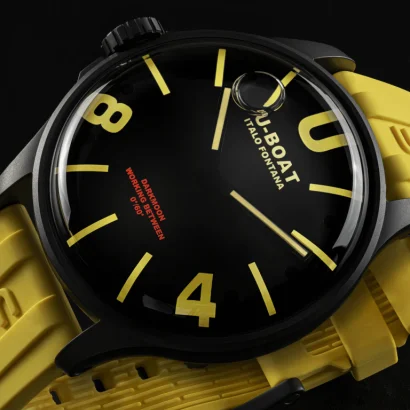 Complementing the design is a 22/20mm yellow ultra-resistant silicone strap, embossed with the U-Boat logo and secured with a black PVD stainless steel buckle. With 50M (5ATM) water resistance, this watch is as practical as it is bold, embodying a perfect balance of sportiness and sophistication.