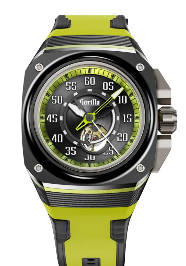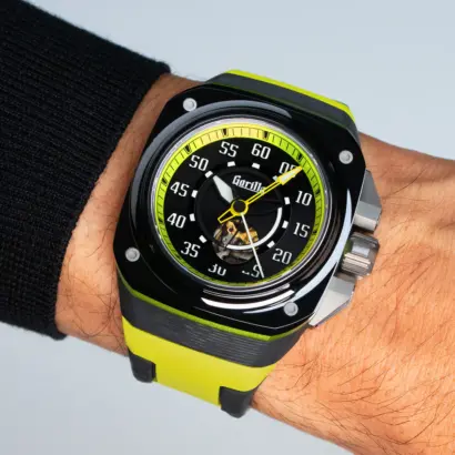 Discover the Acid Green, inspired by hypercars. This dynamic watch features vibrant green anodized details, a scratch-resistant ceramic bezel, and a stratified carbon fiber case, embodying cutting-edge performance. Perfect for watch enthusiasts seeking technology and innovation.