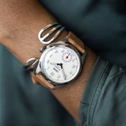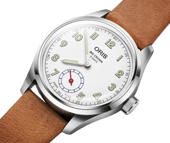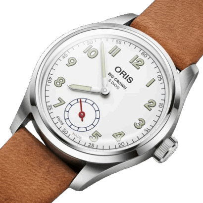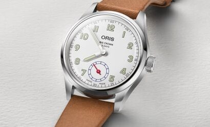 The Oris Wings of Hope Limited Edition is a 40mm pilot’s watch crafted from stainless steel with a white dial and leather strap. Powered by the automatic Calibre 401 with a 5-day power reserve, it is a 1,000-piece limited edition supporting the Wings of Hope charity.